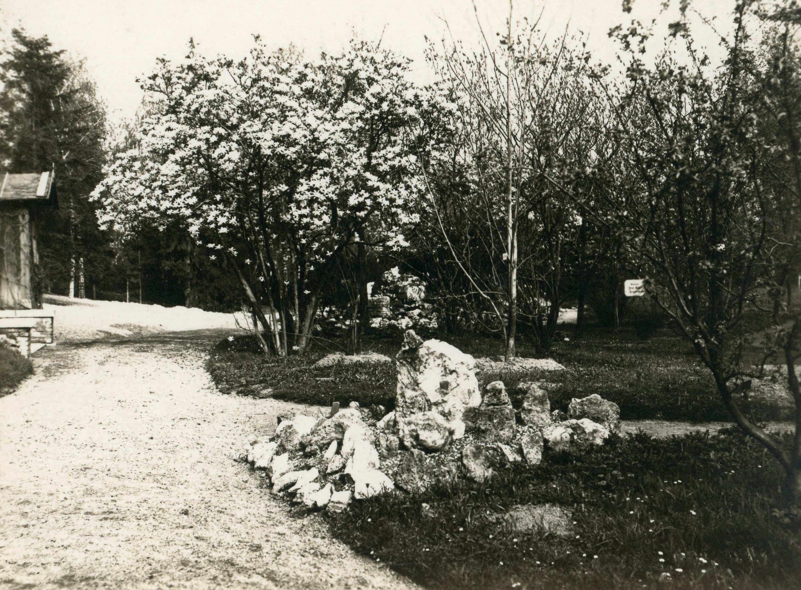 Slika 3. … u kojem sibireju uzgajamo već stotinu godina! Ova arhivska fotografija tadašnjeg nadvrtlara Franje Kušenića pokazuje malu kamenjaru sa sibirejom kod glavnog ulaza u Vrt prije stotinjak godina…